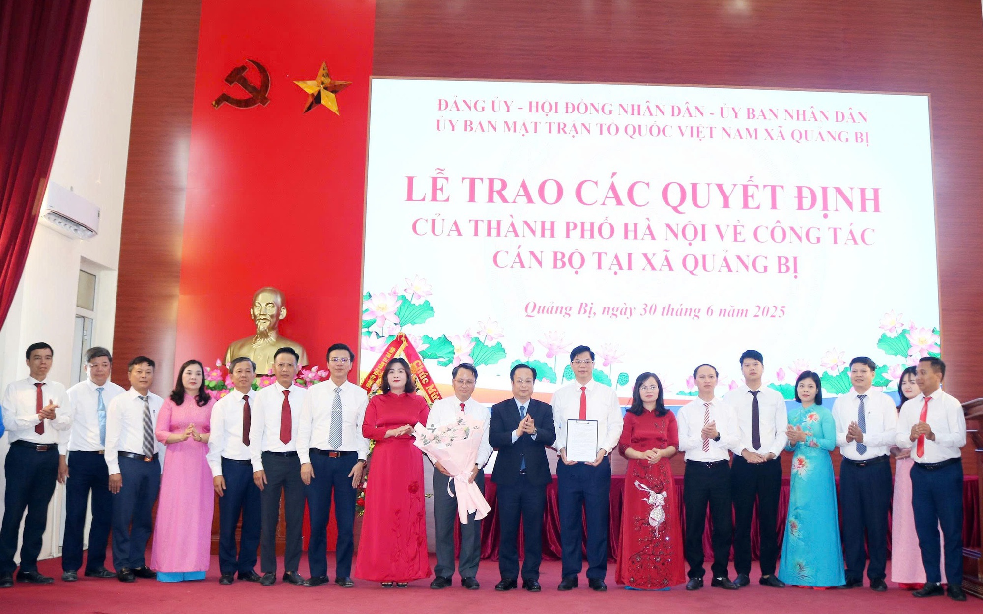 Sau Lễ công bố các Nghị quyết, Quyết định của Trung ương và thành phố Hà Nội về sắp xếp đơn vị hành chính của Thành ủy, HĐND, UBND, Ủy ban MTTQ Việt Nam thành phố Hà Nội tổ chức sáng 30/6, chiều 30/6, Đảng uỷ, HĐND, UBND; Uỷ ban MTTQ xã Quảng Bị đã trang trọng tổ chức Lễ công bố các Quyết định của Thành phố về công tác cán bộ tại xã. Đồng chí Trần Thế Cương -Thành uỷ viên, Giám đốc Sở Giáo dục và Đào tạo Hà Nội dự Lễ và trao quyết định.